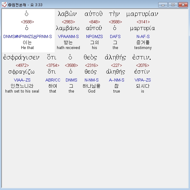 헬라어신약Stephanos,33 ο λαβων αυτου την μαρτυριαν εσφραγισεν οτι ο θεος αληθης εστιν