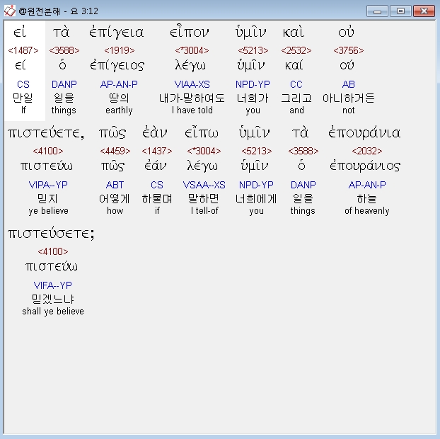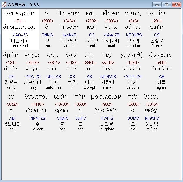 헬라어신약Stephanos,5 απεκριθη ο ιησους αμην αμην λεγω σοι εαν μη τις γεννηθη εξ υδατος και πνευματος ου δυναται εισελθειν εις την βασιλειαν του θεου