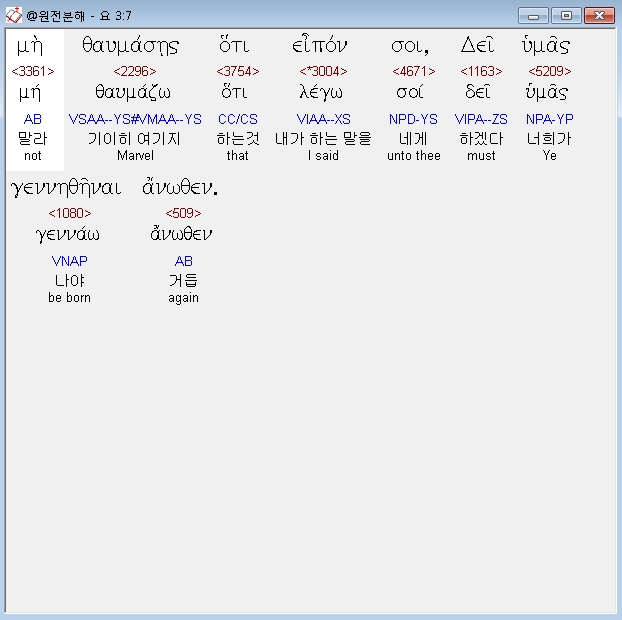 헬라어신약Stephanos,7 μη θαυμασης οτι ειπον σοι δει υμας γεννηθηναι ανωθεν