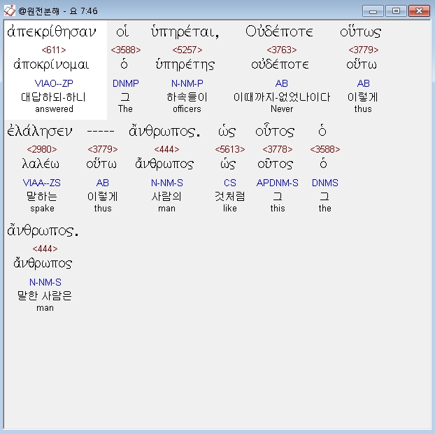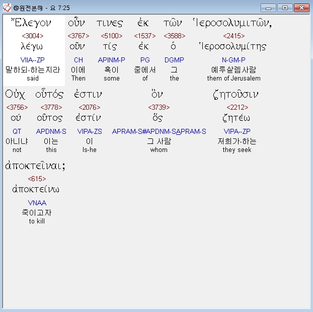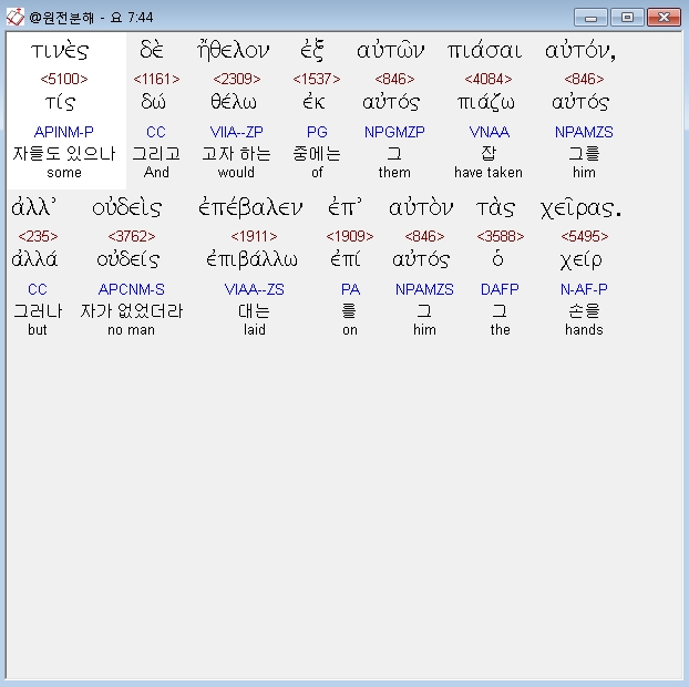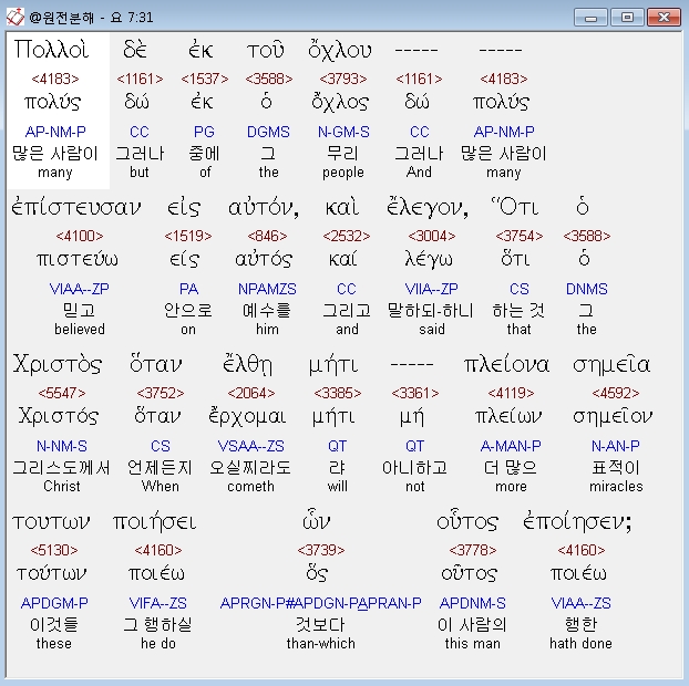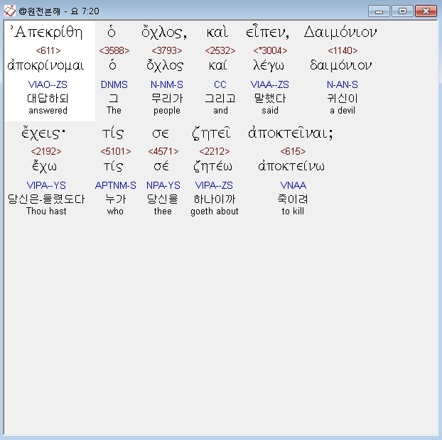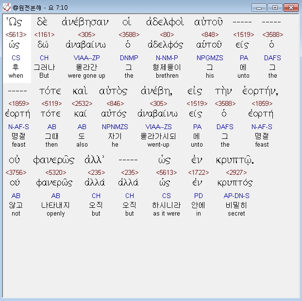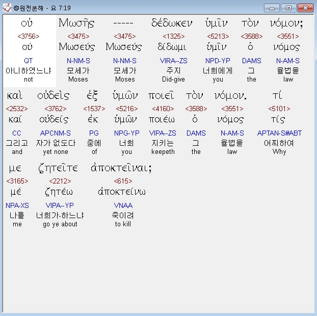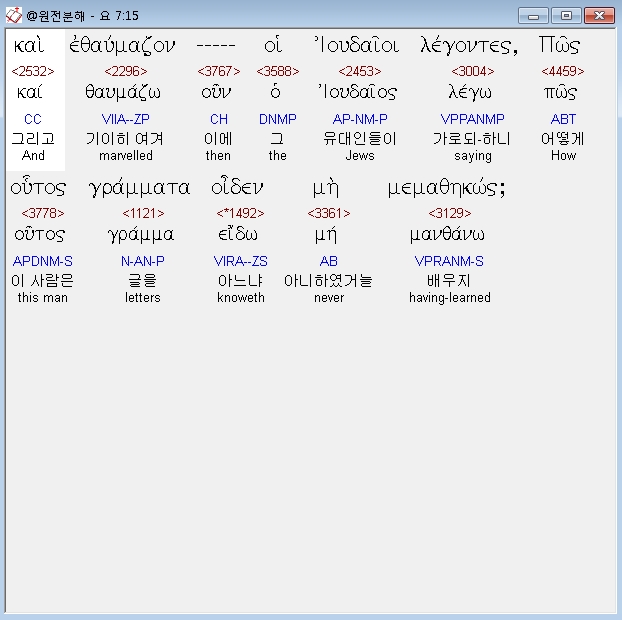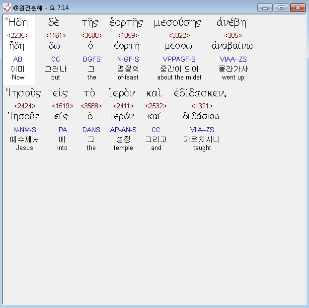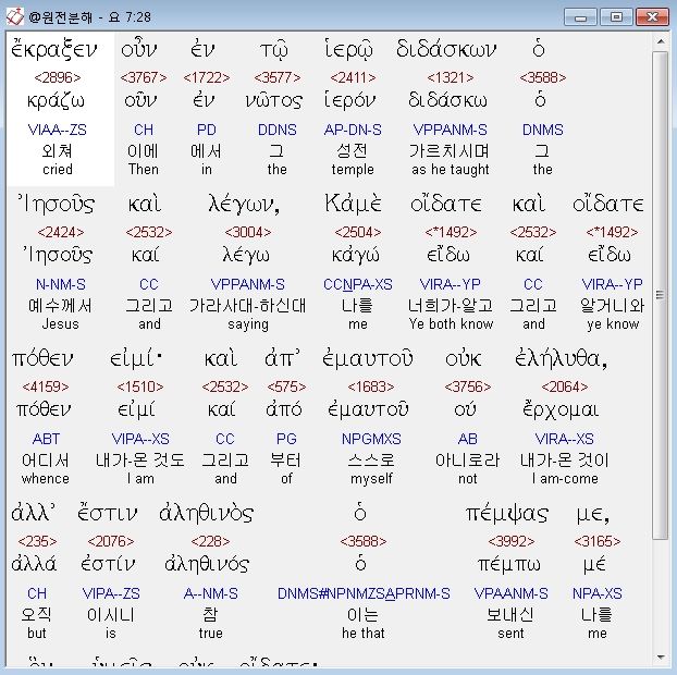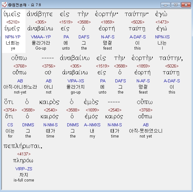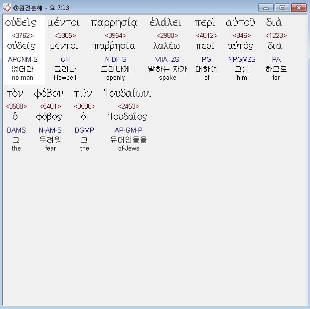 | 헬라어 요한복음 5장 전체 원어 원문 성경 공부 주석 강해 설교 해설 해석 (0) | 2020.10.23 |