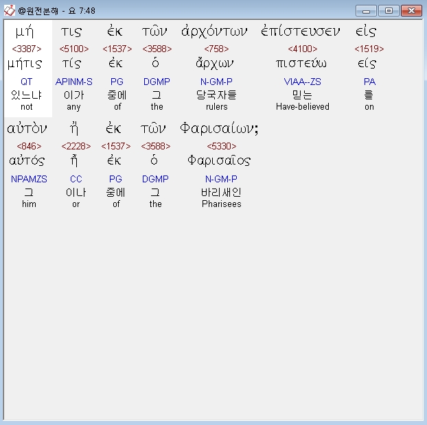 헬라어신약Stephanos,48 μη τις εκ των αρχοντων επιστευσεν εις αυτον η εκ των φαρισαιων