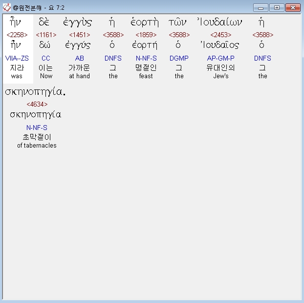 헬라어신약Stephanos,2 ην δε εγγυς η εορτη των ιουδαιων η σκηνοπηγια