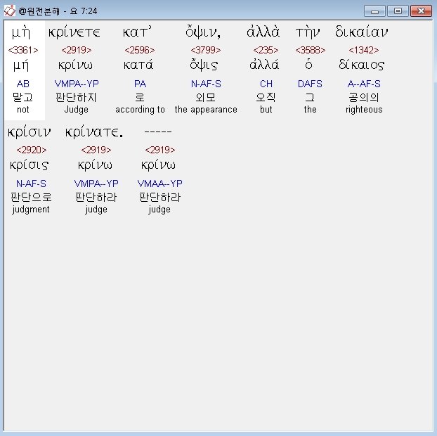 헬라어신약Stephanos,51 μη ο νομος ημων κρινει τον ανθρωπον εαν μη ακουση παρ αυτου προτερον και γνω τι ποιει