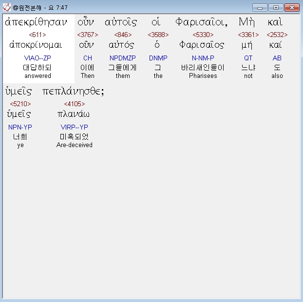 헬라어신약Stephanos,47 απεκριθησαν ουν αυτοις οι φαρισαιοι μη και υμεις πεπλανησθε