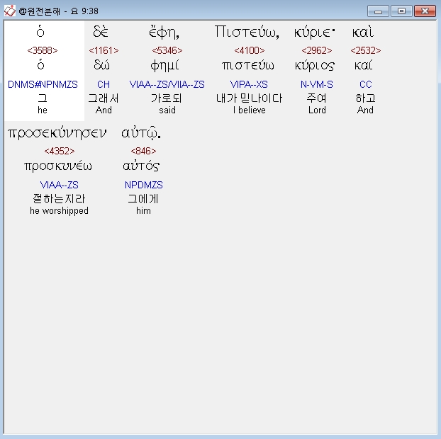 헬라어신약Stephanos,38 ο δε εφη πιστευω κυριε και προσεκυνησεν αυτω