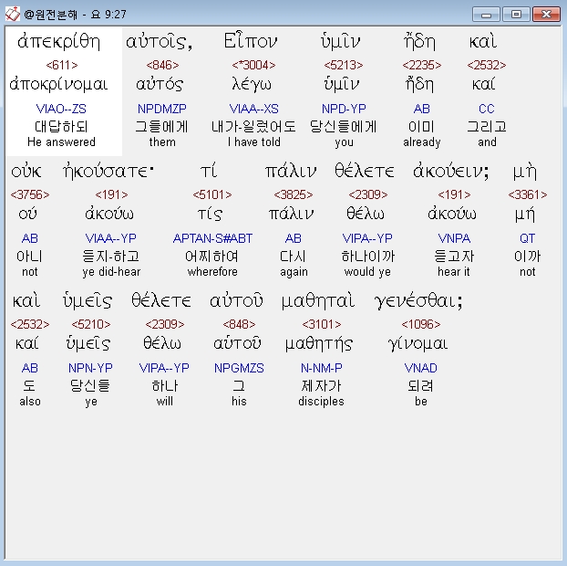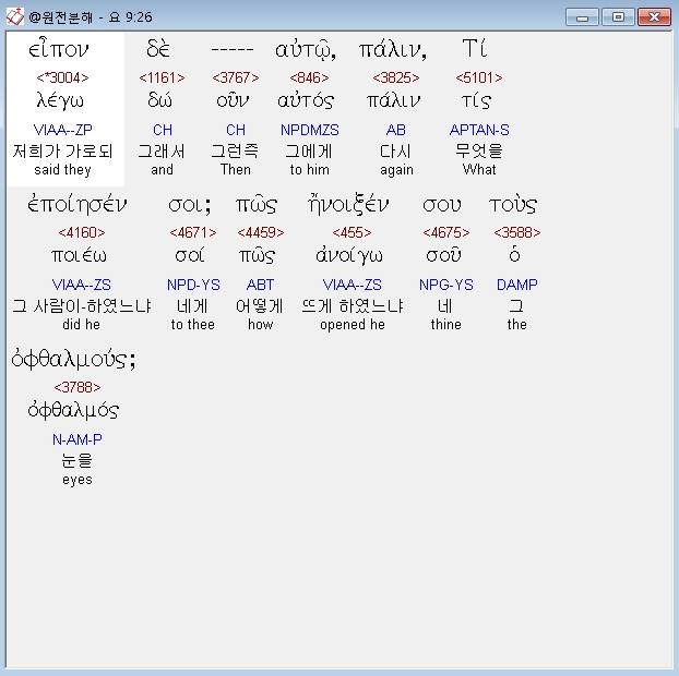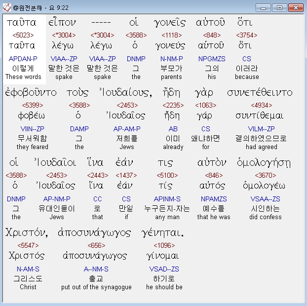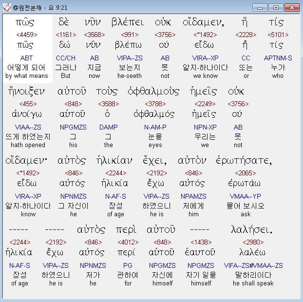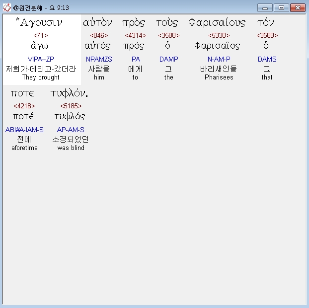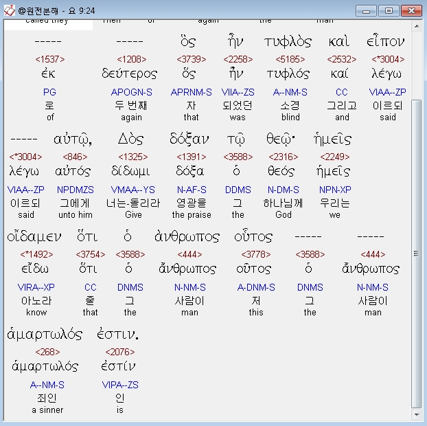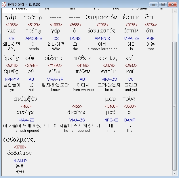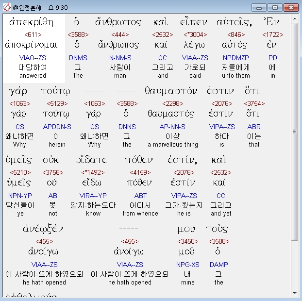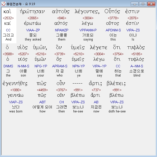 | 헬라어 요한복음 10장 전체 원어 원문 성경 공부 주석 강해 설교 해설 해석 (0) | 2020.10.23 |