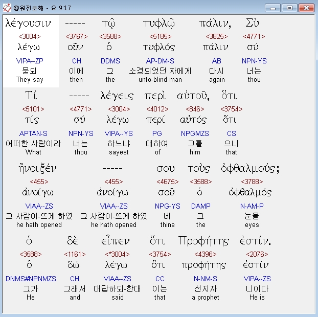 헬라어신약Stephanos,8 οι ουν γειτονες και οι θεωρουντες αυτον το προτερον οτι τυφλος ην ελεγον ουχ ουτος εστιν ο καθημενος και προσαιτων