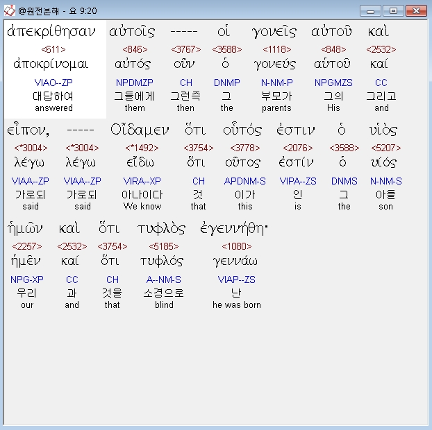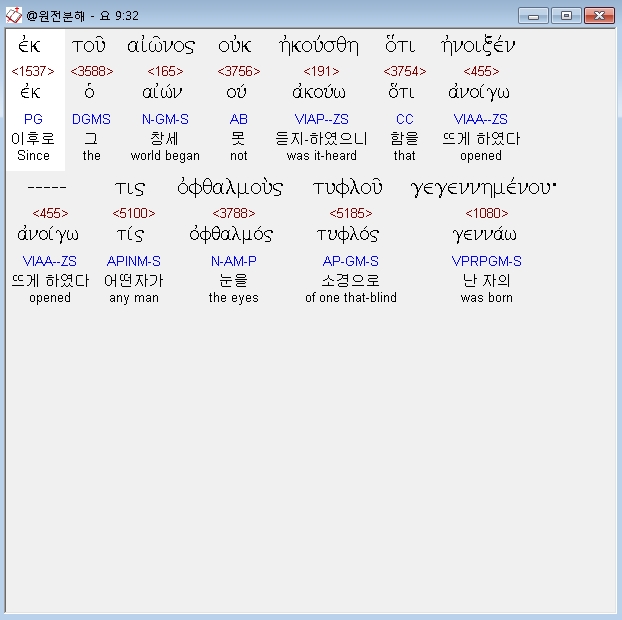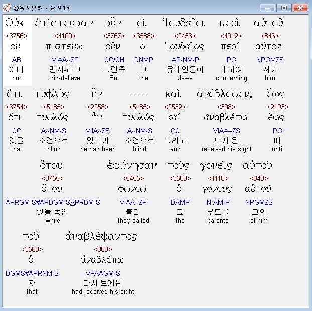 헬라어신약Stephanos,3 απεκριθη ο ιησους ουτε ουτος ημαρτεν ουτε οι γονεις αυτου αλλ ινα φανερωθη τα εργα του θεου εν αυτω