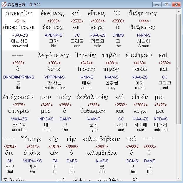 | 헬라어 요한복음 11장 전체 원어 원문 성경 공부 주석 강해 설교 해설 해석 (0) | 2020.10.23 |