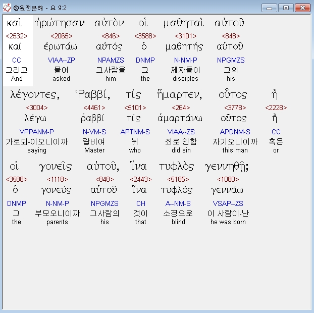 헬라어신약Stephanos,2 και ηρωτησαν αυτον οι μαθηται αυτου λεγοντες ραββι τις ημαρτεν ουτος η οι γονεις αυτου ινα τυφλος γεννηθη