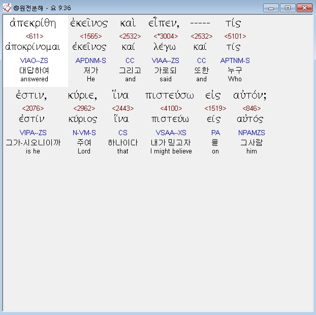 헬라어신약Stephanos,36 απεκριθη εκεινος και ειπεν τις εστιν κυριε ινα πιστευσω εις αυτον