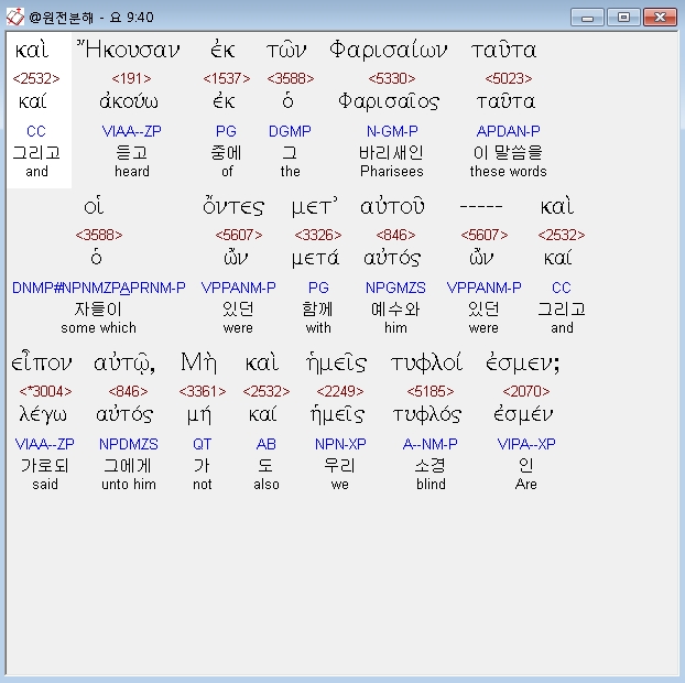 헬라어신약Stephanos,40 και ηκουσαν εκ των φαρισαιων ταυτα οι οντες μετ αυτου και ειπον αυτω μη και ημεις τυφλοι εσμεν