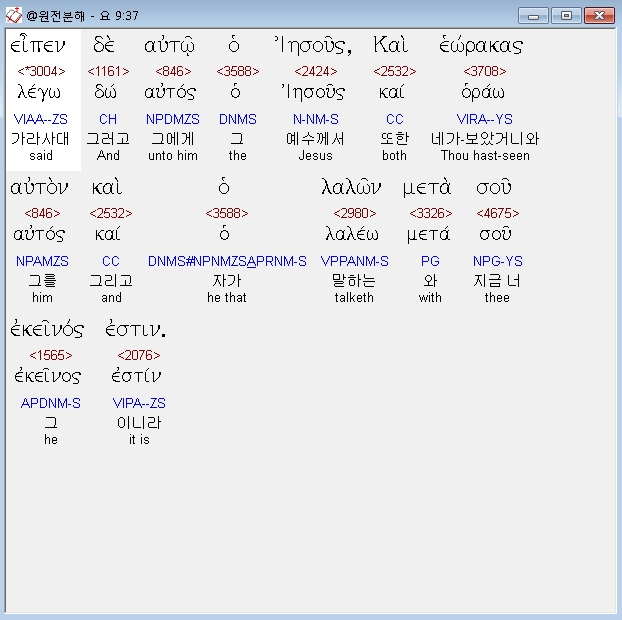 헬라어신약Stephanos,37 ειπεν δε αυτω ο ιησους και εωρακας αυτον και ο λαλων μετα σου εκεινος εστιν