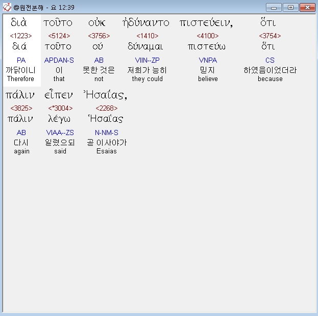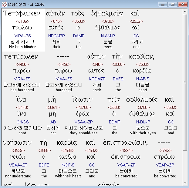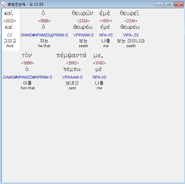 | 헬라어 요한복음 9장 전체 원어 원문 성경 공부 주석 강해 설교 해설 해석 (0) | 2020.10.23 |