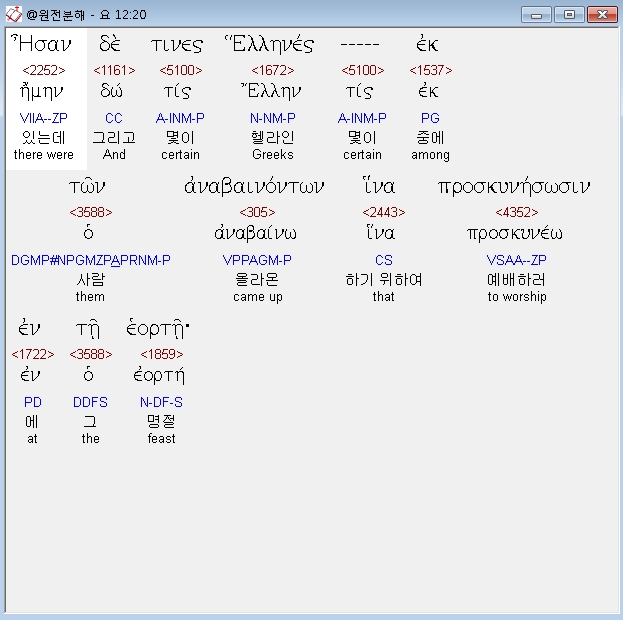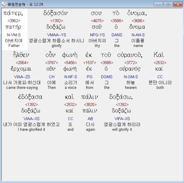 | 헬라어 요한복음 14장 전체 원어 원문 성경 공부 주석 강해 설교 해설 해석 (0) | 2020.10.23 |