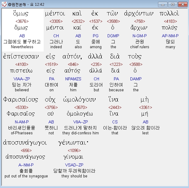 | 헬라어 요한복음 10장 전체 원어 원문 성경 공부 주석 강해 설교 해설 해석 (0) | 2020.10.23 |