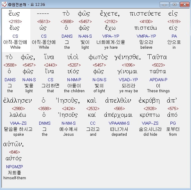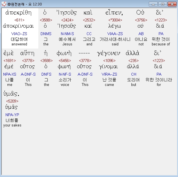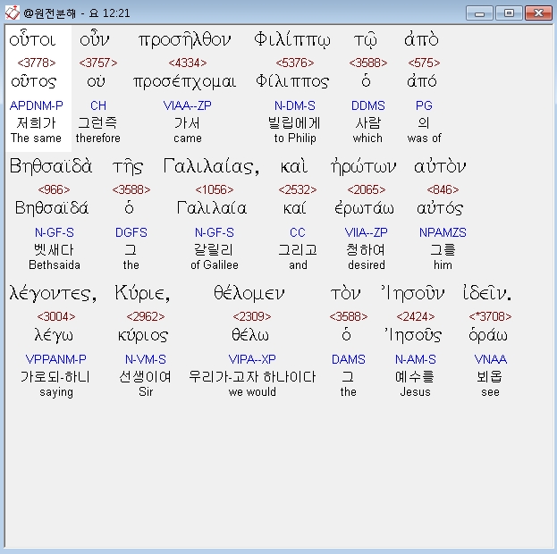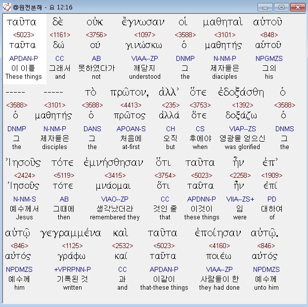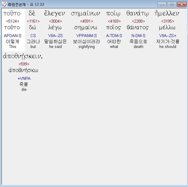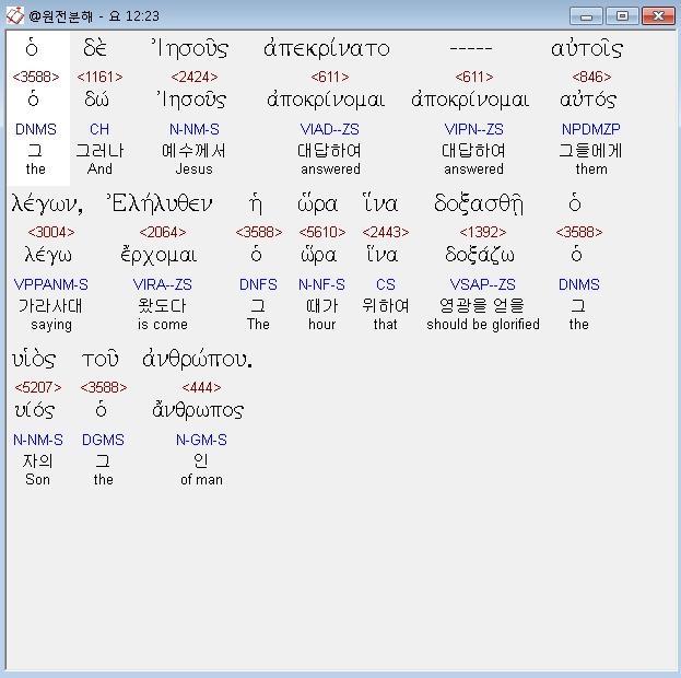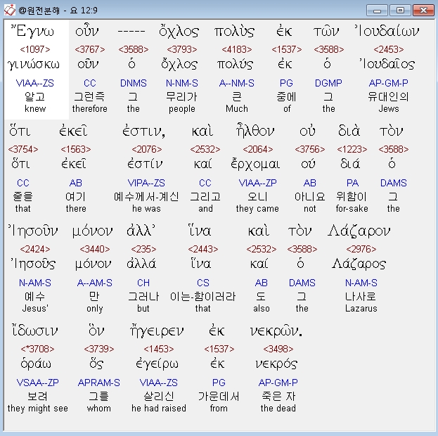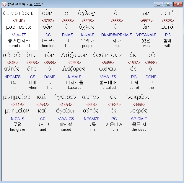 | 헬라어 요한복음 11장 전체 원어 원문 성경 공부 주석 강해 설교 해설 해석 (0) | 2020.10.23 |