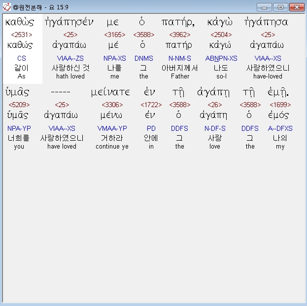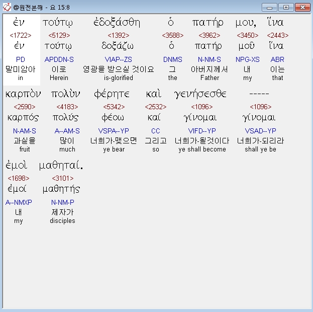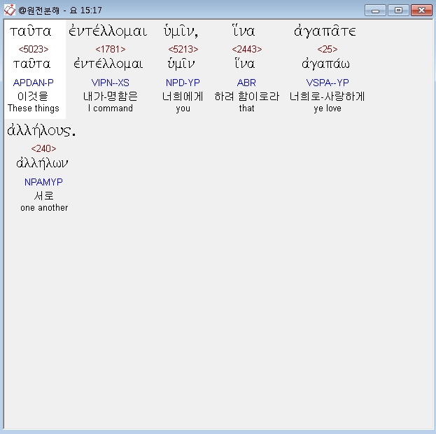 | 헬라어 요한복음 17장 전체 원어 원문 성경 공부 주석 강해 설교 해설 해석 (0) | 2020.10.23 |