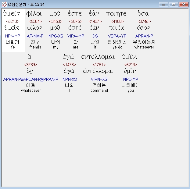 | 헬라어 요한복음 14장 전체 원어 원문 성경 공부 주석 강해 설교 해설 해석 (0) | 2020.10.23 |