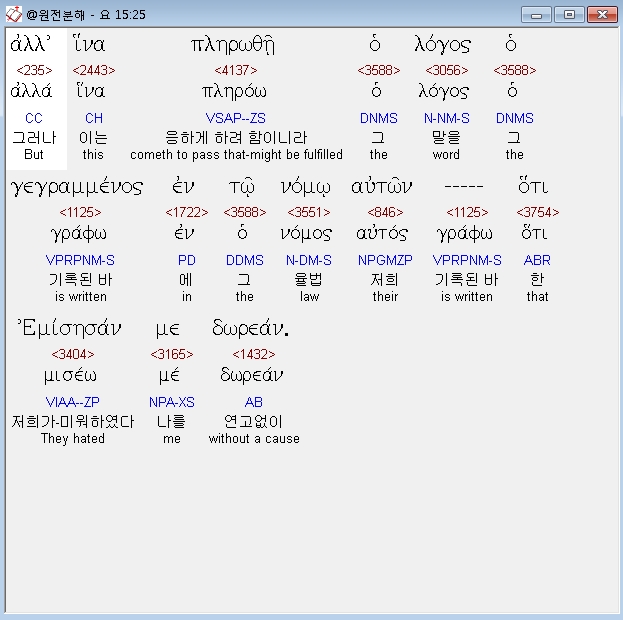 헬라어신약Stephanos,25 αλλ ινα πληρωθη ο λογος ο γεγραμμενος εν τω νομω αυτων οτι εμισησαν με δωρεαν