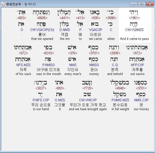 | 히브리어 창세기 44장 전체 원어 원문 성경 공부 주석 강해 설교 해설 해석 (0) | 2020.09.25 |