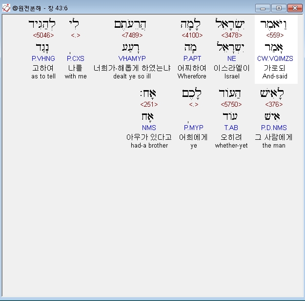 히브리어구약BHS,6 וַיֹּאמֶר יִשְׂרָאֵל לָמָה הֲרֵעֹתֶם לִי לְהַגִּיד לָאִישׁ הַעֹוד לָכֶם אָח׃