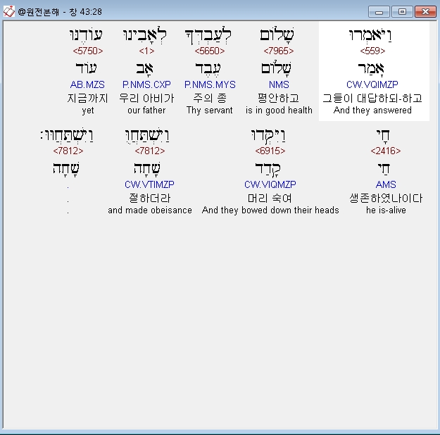| 히브리어 창세기 45장 전체 원어 원문 성경 공부 주석 강해 설교 해설 해석 (0) | 2020.09.25 |