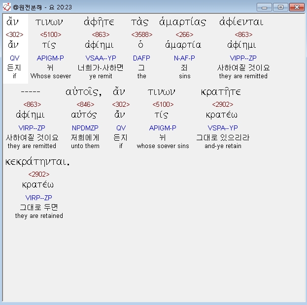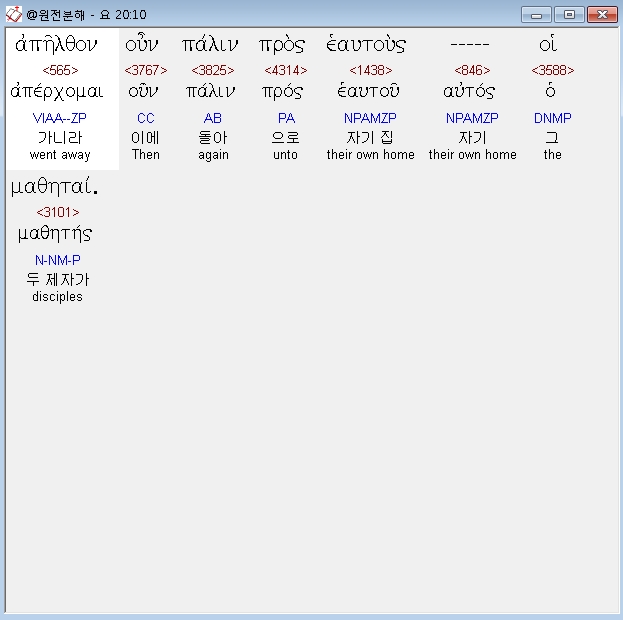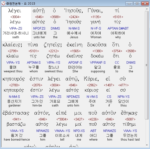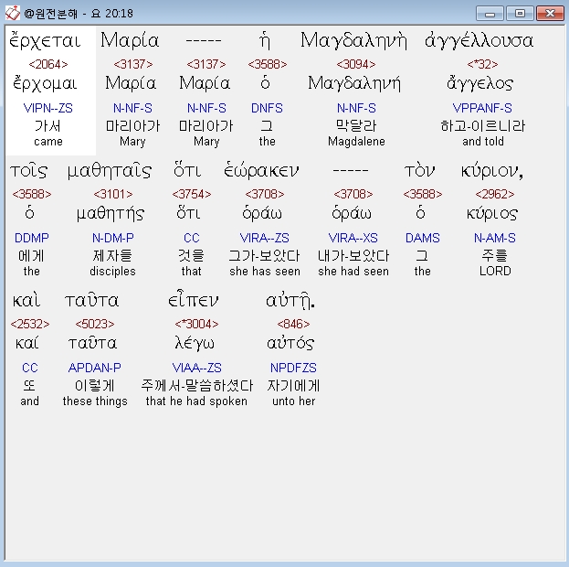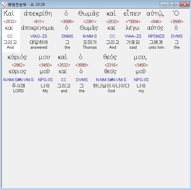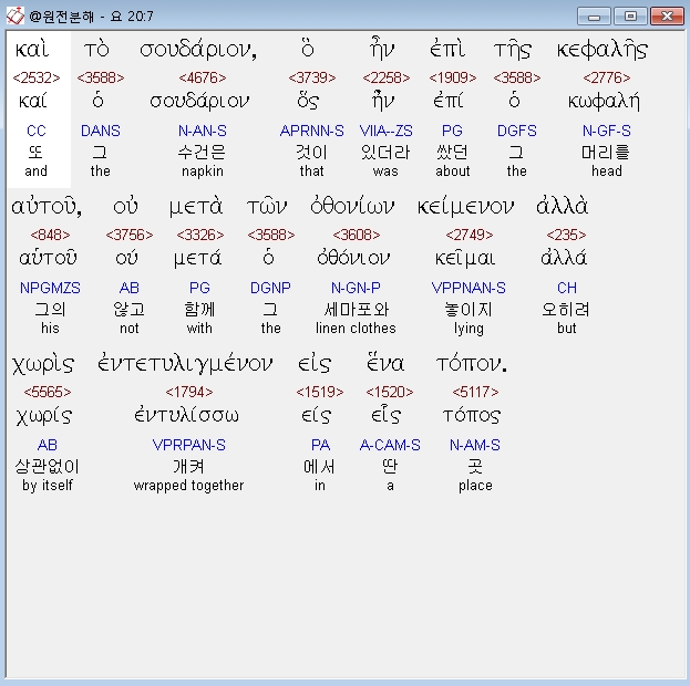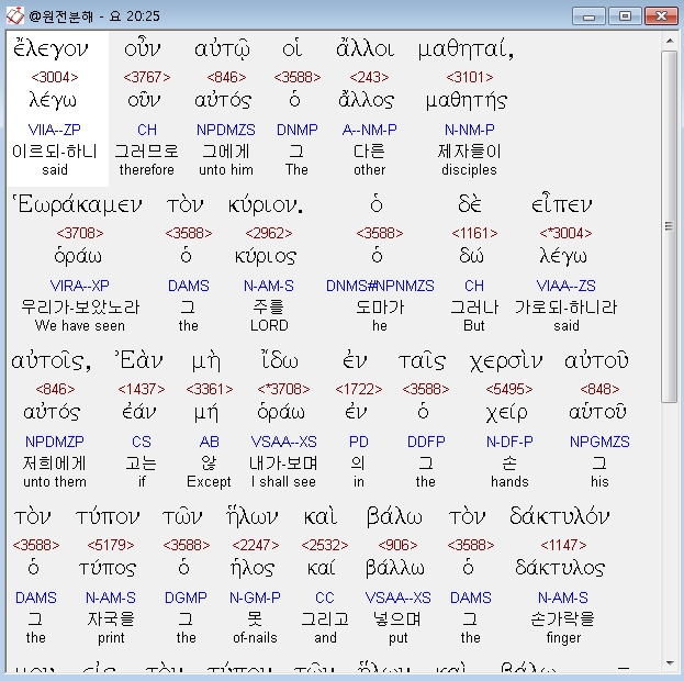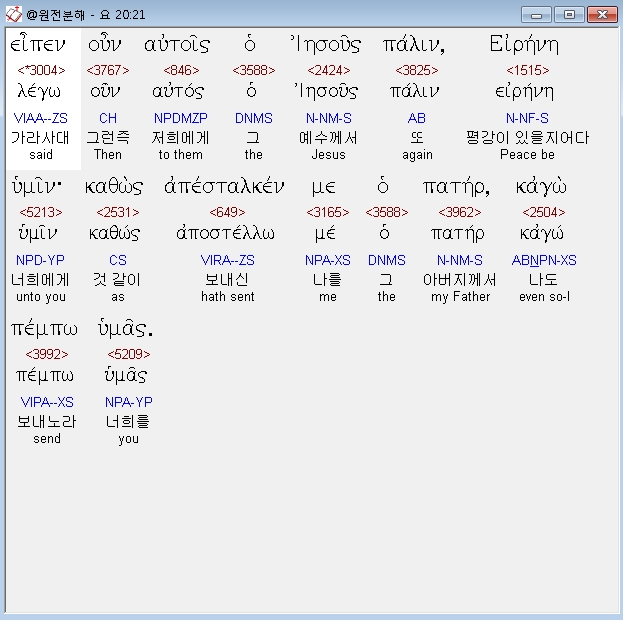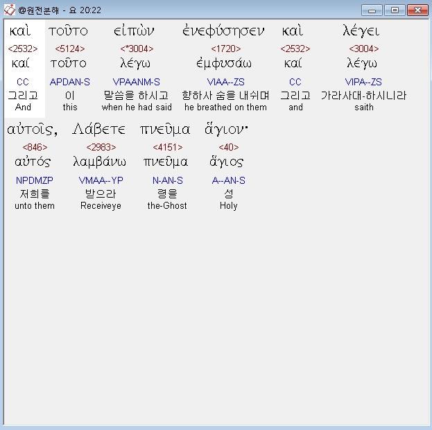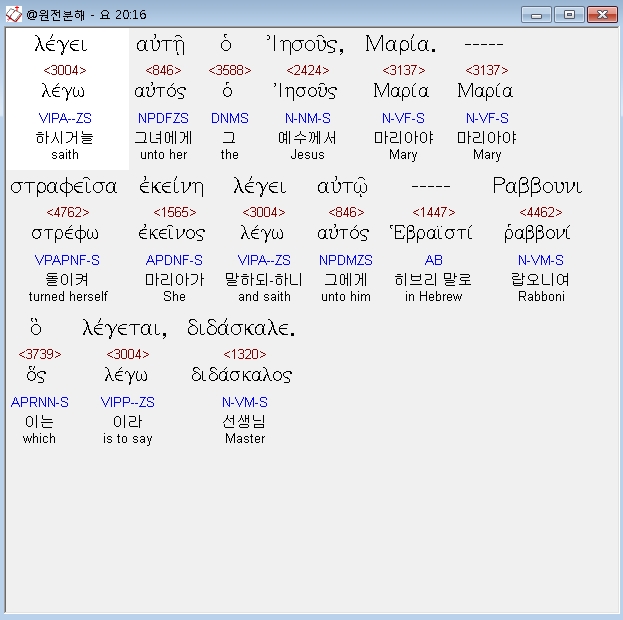 | 헬라어 요한복음 21장 전체 원어 원문 성경 공부 주석 강해 설교 해설 해석 (0) | 2020.10.23 |