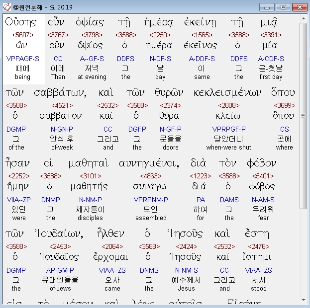 | 헬라어 요한복음 19장 전체 원어 원문 성경 공부 주석 강해 설교 해설 해석 (0) | 2020.10.23 |