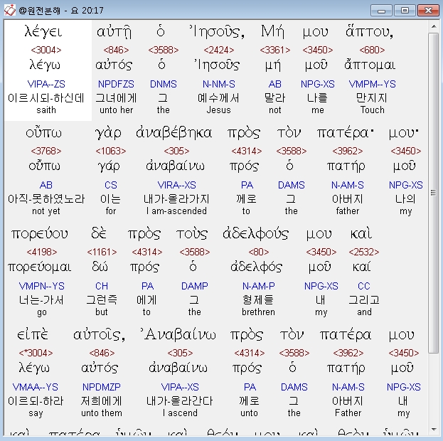 | 헬라어 요한복음 17장 전체 원어 원문 성경 공부 주석 강해 설교 해설 해석 (0) | 2020.10.23 |