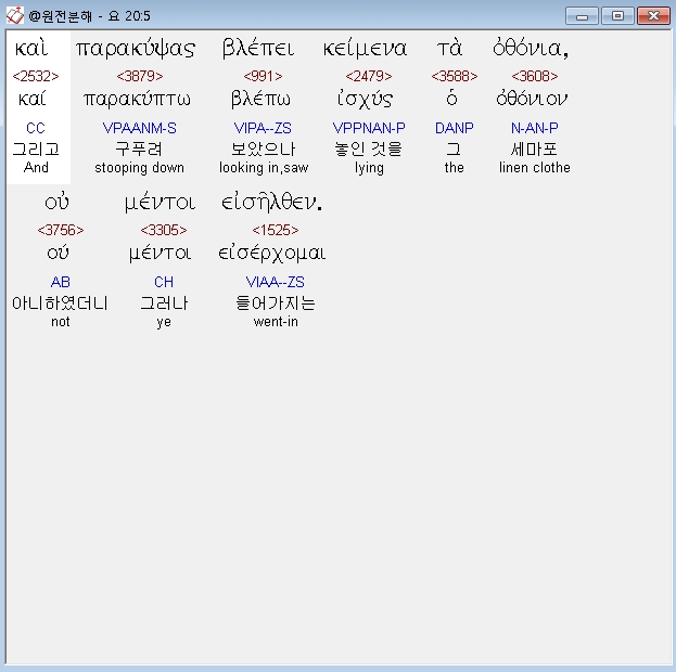 헬라어신약Stephanos,5 και παρακυψας βλεπει κειμενα τα οθονια ου μεντοι εισηλθεν