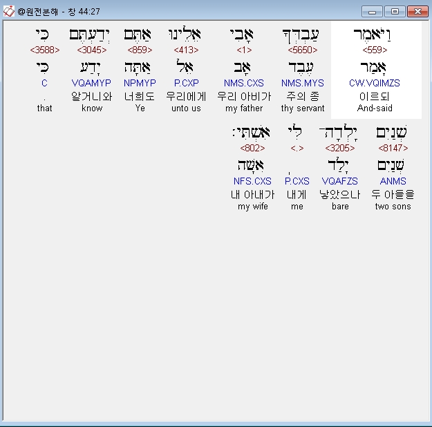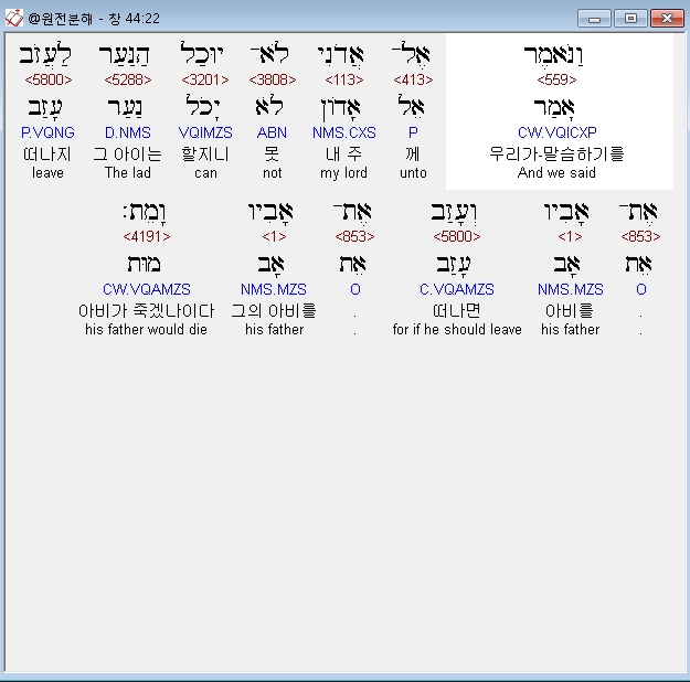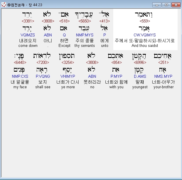| 히브리어 창세기 45장 전체 원어 원문 성경 공부 주석 강해 설교 해설 해석 (0) | 2020.09.25 |