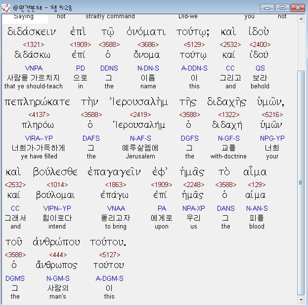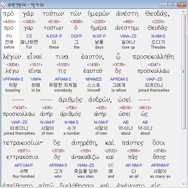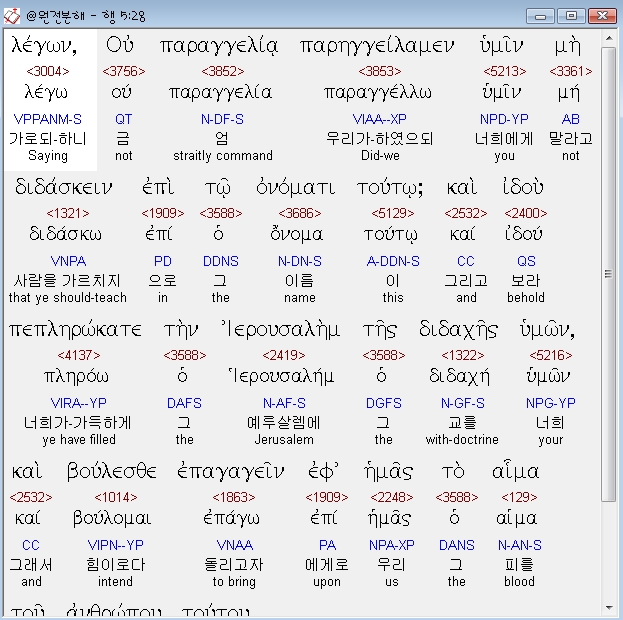 | 헬라어 사도행전 4장 전체 원어 원문 성경 공부 주석 강해 설교 해설 해석 (0) | 2020.10.24 |