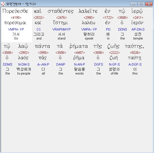 | 헬라어 사도행전 3장 전체 원어 원문 성경 공부 주석 강해 설교 해설 해석 (0) | 2020.10.24 |