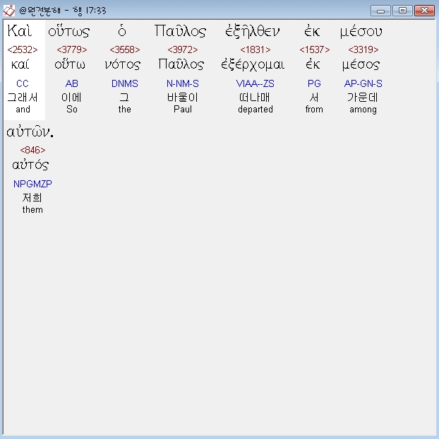 헬라어신약Stephanos,33 και ουτως ο παυλος εξηλθεν εκ μεσου αυτων