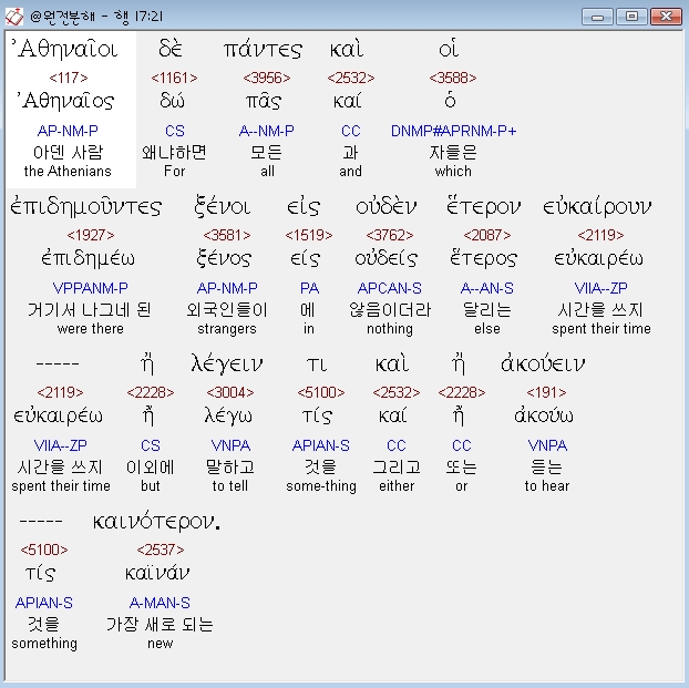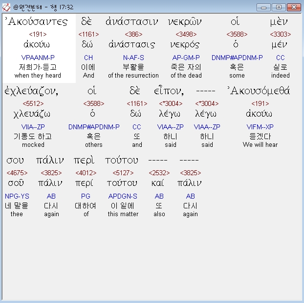 | 헬라어 사도행전 18장 전체 원어 원문 성경 공부 주석 강해 설교 해설 해석 (0) | 2020.10.24 |
