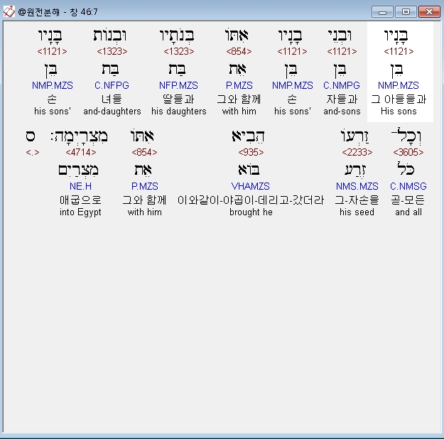 | 히브리어 창세기 47장 전체 원어 원문 성경 공부 주석 강해 설교 해설 해석 (0) | 2020.09.25 |