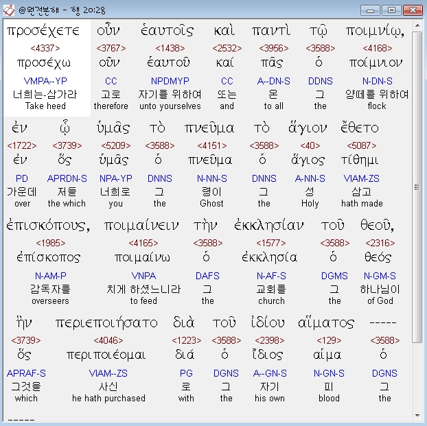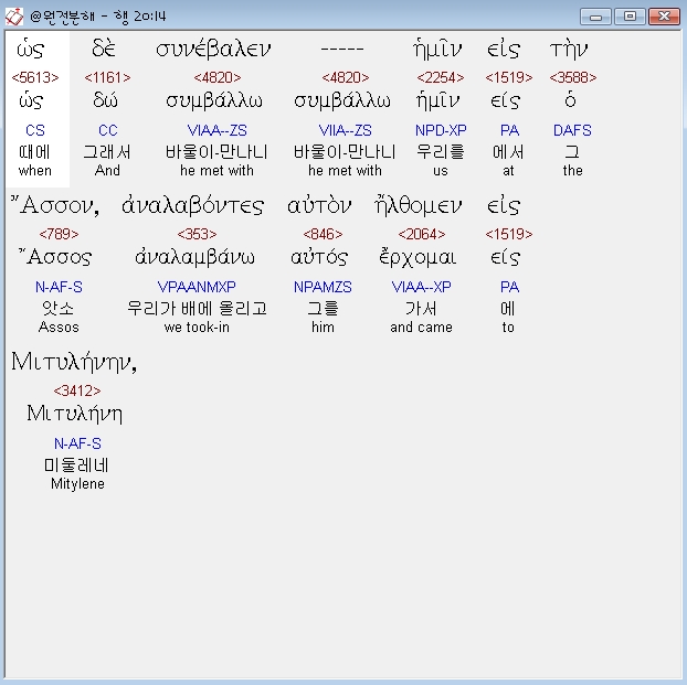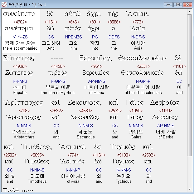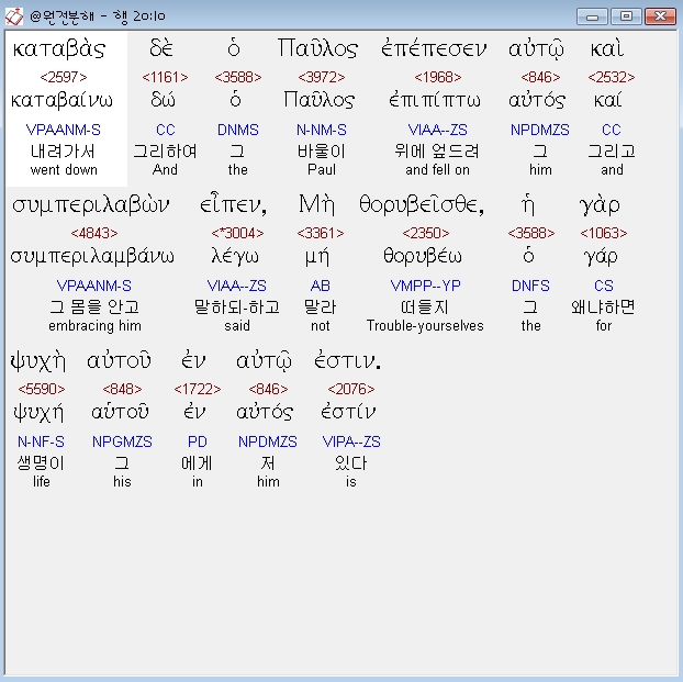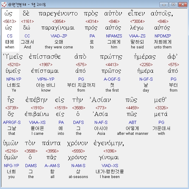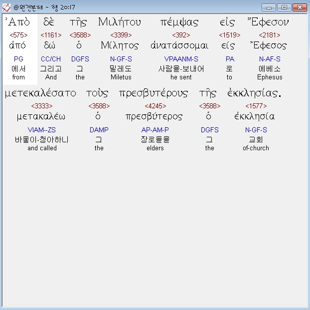 | 헬라어 사도행전 19장 전체 원어 원문 성경 공부 주석 강해 설교 해설 해석 (0) | 2020.10.24 |
