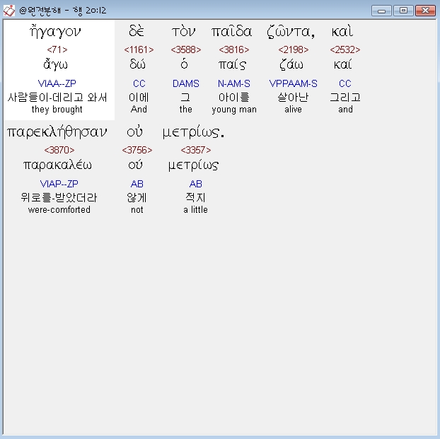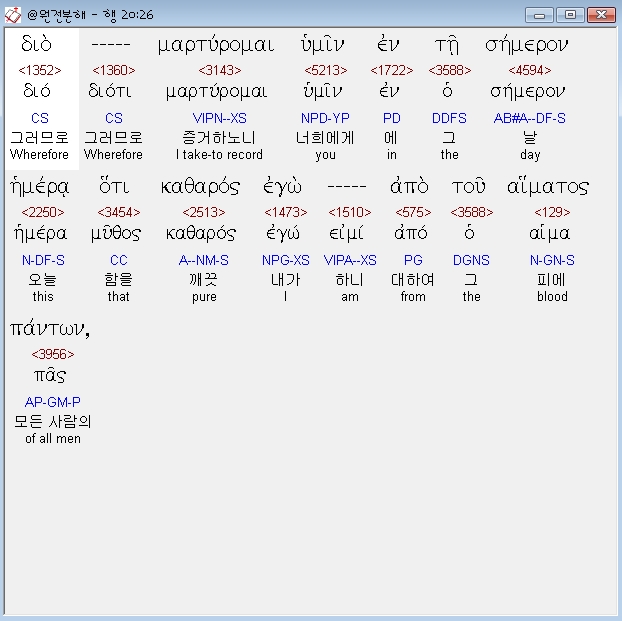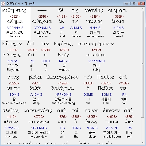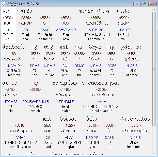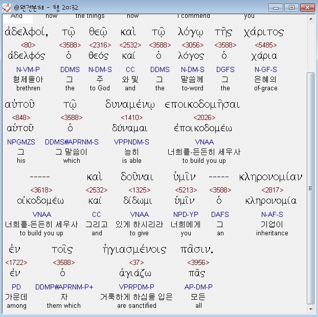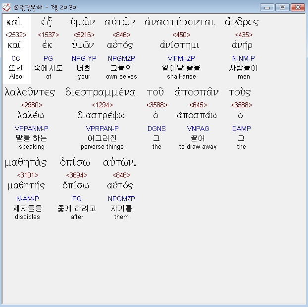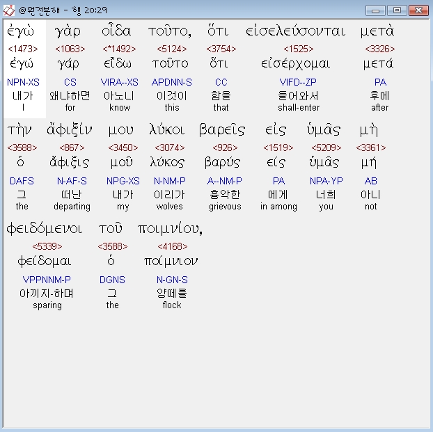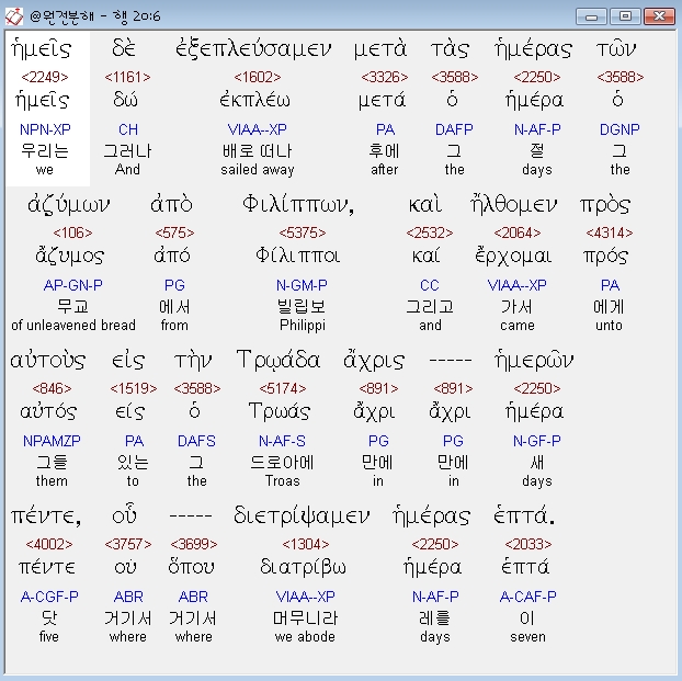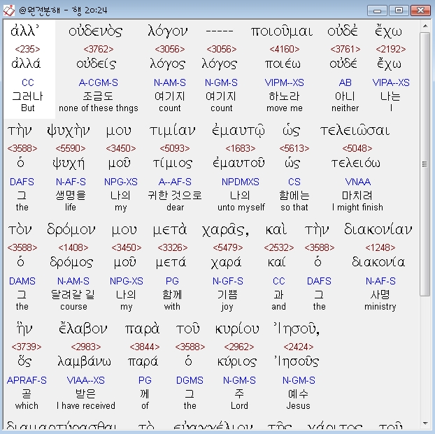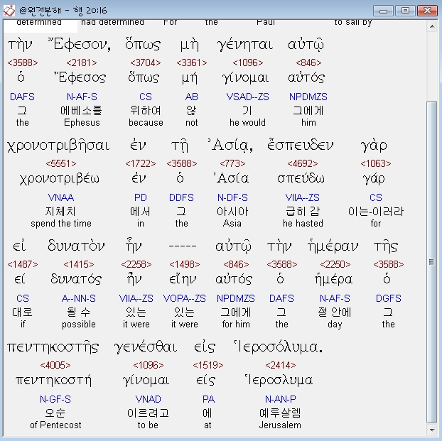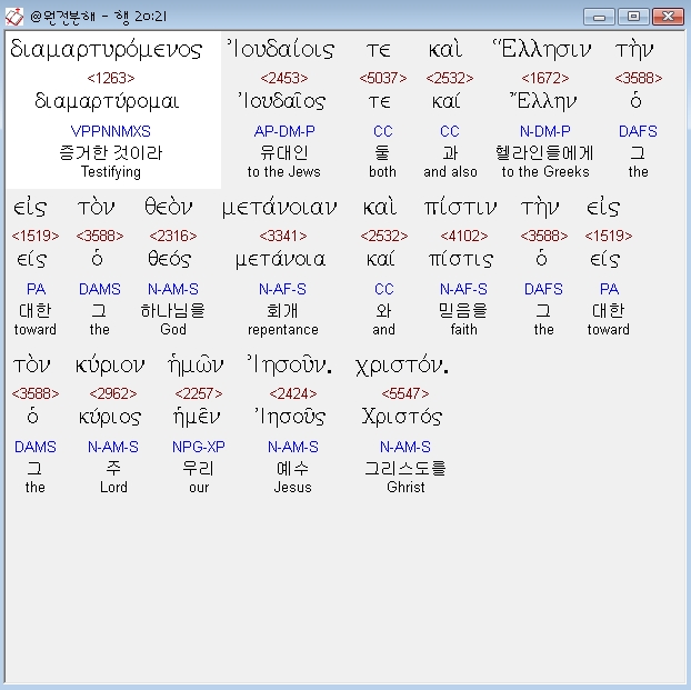 | 헬라어 사도행전 21장 전체 원어 원문 성경 공부 주석 강해 설교 해설 해석 (0) | 2020.10.24 |