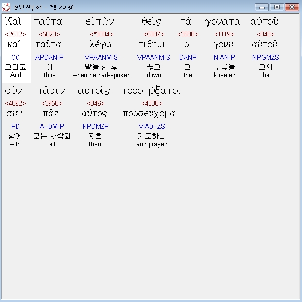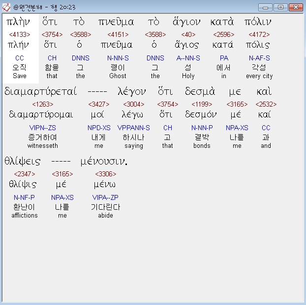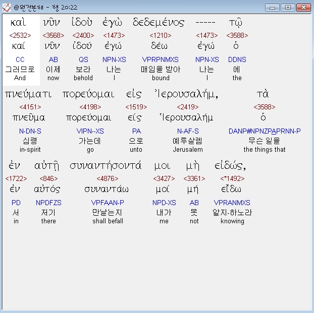 | 헬라어 사도행전 22장 전체 원어 원문 성경 공부 주석 강해 설교 해설 해석 (0) | 2020.10.24 |