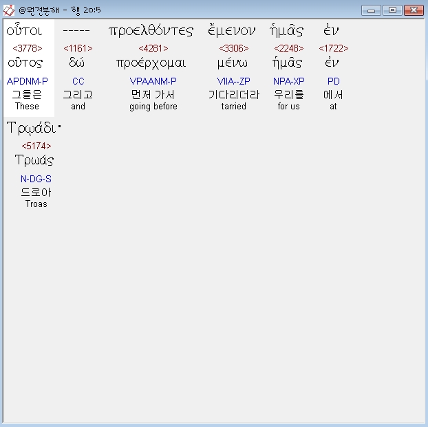 헬라어신약Stephanos,5 ουτοι προελθοντες εμενον ημας εν τρωαδι