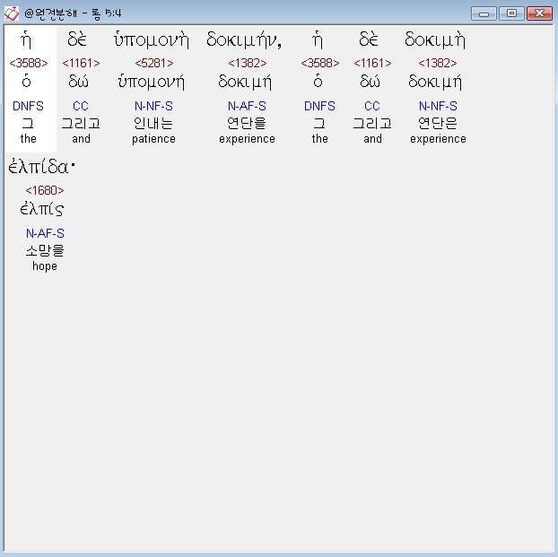 헬라어신약Stephanos,4 η δε υπομονη δοκιμην η δε δοκιμη ελπιδα