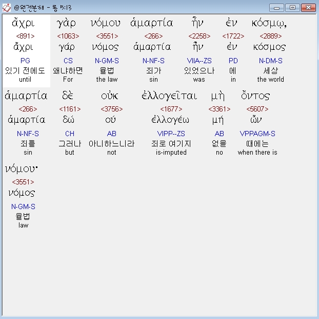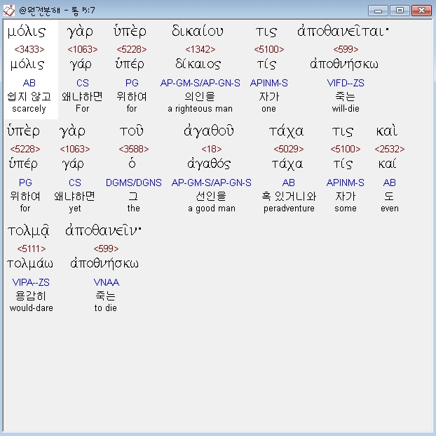 | 헬라어 로마서 7장 전체 원어 원문 성경 공부 주석 강해 설교 해설 해석 (0) | 2020.10.24 |