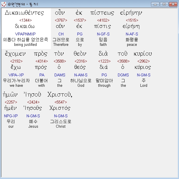 헬라어신약Stephanos,1 δικαιωθεντες ουν εκ πιστεως ειρηνην εχομεν προς τον θεον δια του κυριου ημων ιησου χριστου