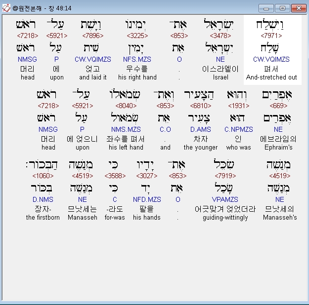 영어MSG,18 saying, "That's the wrong head, Father; the other one is the firstborn; place your right hand on his head."