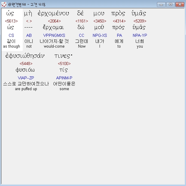 헬라어신약Stephanos,18 ως μη ερχομενου δε μου προς υμας εφυσιωθησαν τινες