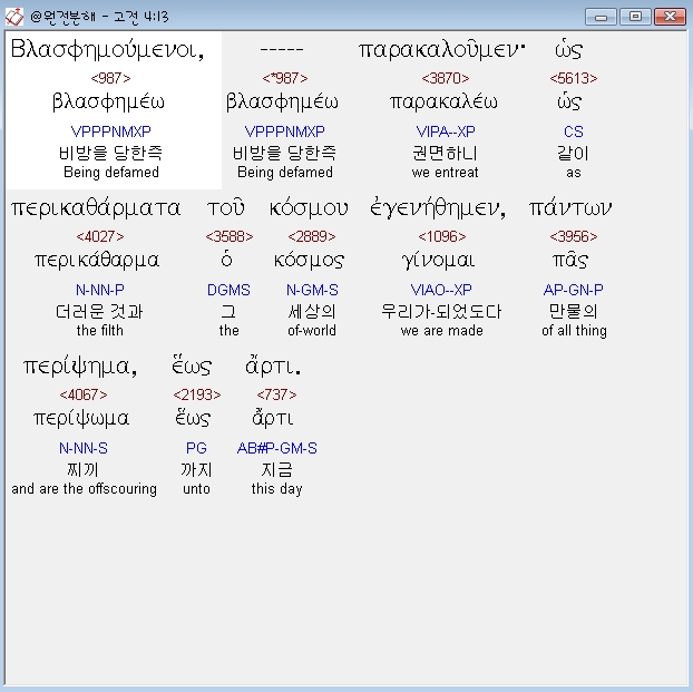 | 헬라어 고린도전서 3장 전체 원어 원문 성경 공부 주석 강해 설교 해설 해석 (0) | 2020.10.25 |