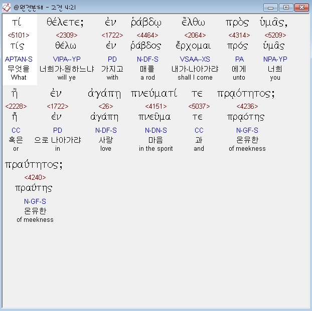 헬라어신약Stephanos,21 τι θελετε εν ραβδω ελθω προς υμας η εν αγαπη πνευματι τε πραοτητος