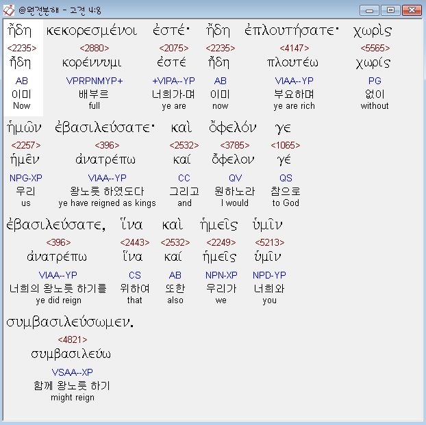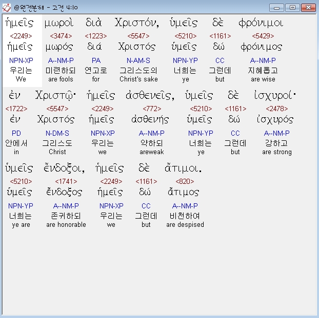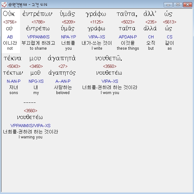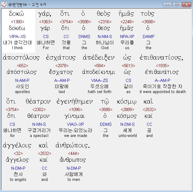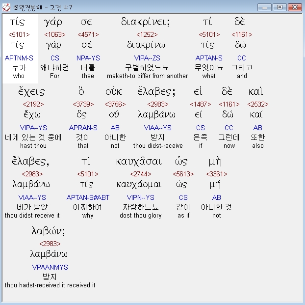 | 헬라어 고린도전서 2장 전체 원어 원문 성경 공부 주석 강해 설교 해설 해석 (0) | 2020.10.25 |
