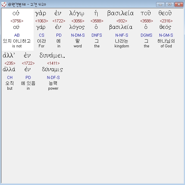 헬라어신약Stephanos,20 ου γαρ εν λογω η βασιλεια του θεου αλλ εν δυναμει